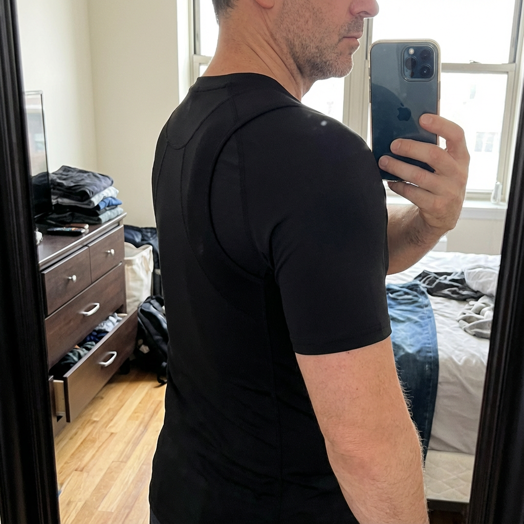 I was expecting something stiff or restrictive. It’s not. It feels like a normal piece of clothing, just better. After a few days I noticed less fatigue in my upper back.